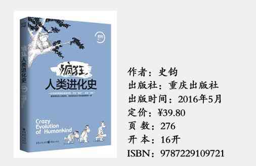 《疯狂人类进化史》全书旁征博引,妙趣横生,风格从容幽默,行文简洁流畅。读来忍俊不禁,欲罢不能,令人脑洞大开,拍案叫绝。读者在尽享阅读快感之余,还可以略窥人类在悠远苍茫的历史岁月中演绎的风尘往事。《疯狂人类进化史》让读者展开一次波澜壮阔的人类身世探寻之旅,这是每一个人的大历史,我们一定会为自己的祖先那不可思议的进化历程而惊叹不已。