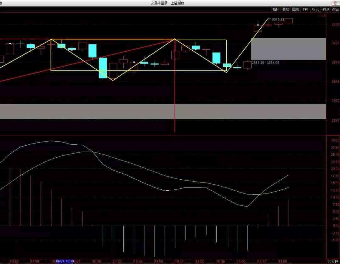 上证指数,收3044点,涨66个点,涨幅2.22%,收中阳线。