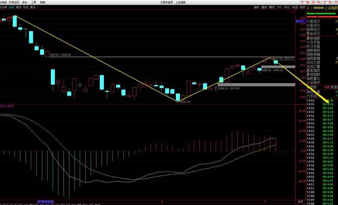 上证指数,收3015点,跌28个点,跌幅0.94%,收中阴线。