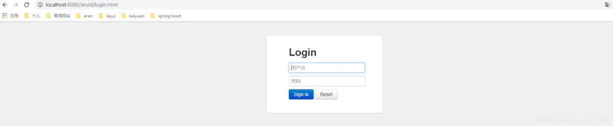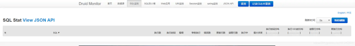 我们直接启动项目,浏览器访问localhost:8080/druid或者127.0.0.1:8080/druid得到如下页面说明配置成功: