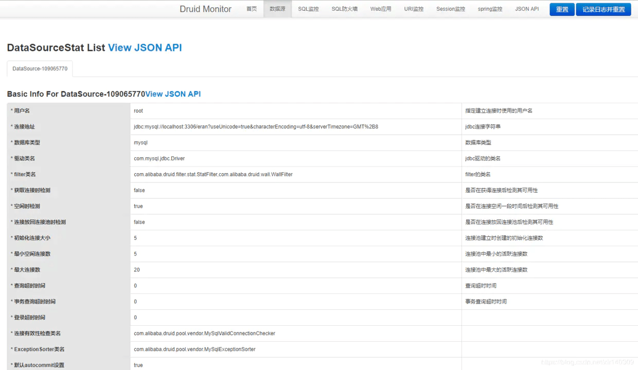 这里配置很重要,比如不配置filters的stat,我们在Druid的监控页面中就拿不到想要的信息。