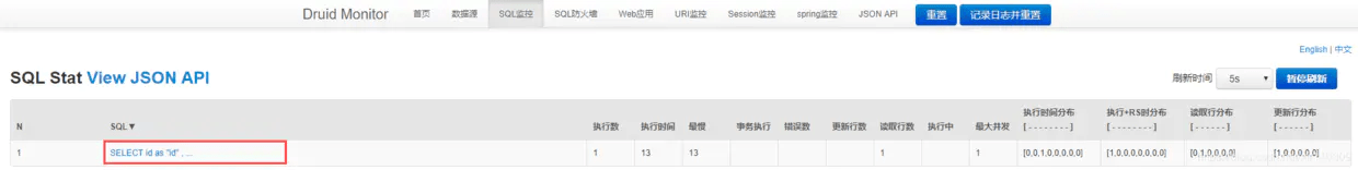 发现此时没有任何sql执行记录,所以我们访问链接localhost:8080/user(自己整一个测试请求),执行一次查询操作,再来查看 sql监控页面,发现已经有了一条记录:
