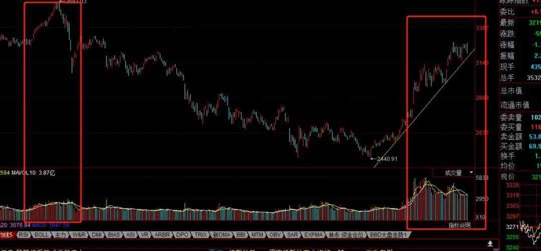 当我们短期分析陷入矛盾之时,就可以拉长分析周期,看的更长远,比如拉长到2018年初的K线,会发现指数差不多的情况下,现在的成交量远高于2018年初,说明现在的成交量是可以支撑指数,完全无需忧心会跌回2800点附近,所以,此处我们应该相信趋势,默认后市会继续上涨。