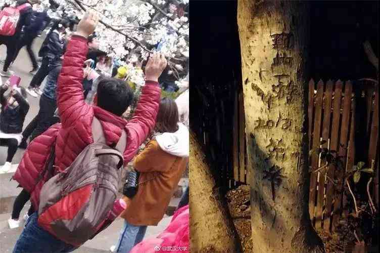 每一年樱花季,武汉大学的樱花总会惨遭毒手:折花枝、摘花、爬树、在树上刻字......
